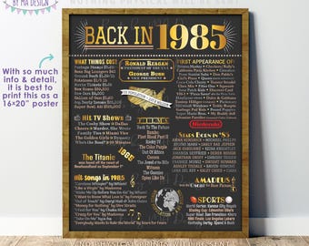 Back in the Year 1985 Poster Board, Remember 1985 Sign, Flashback to 1985 USA History from 1985, PRINTABLE 16x20” Sign <ID>