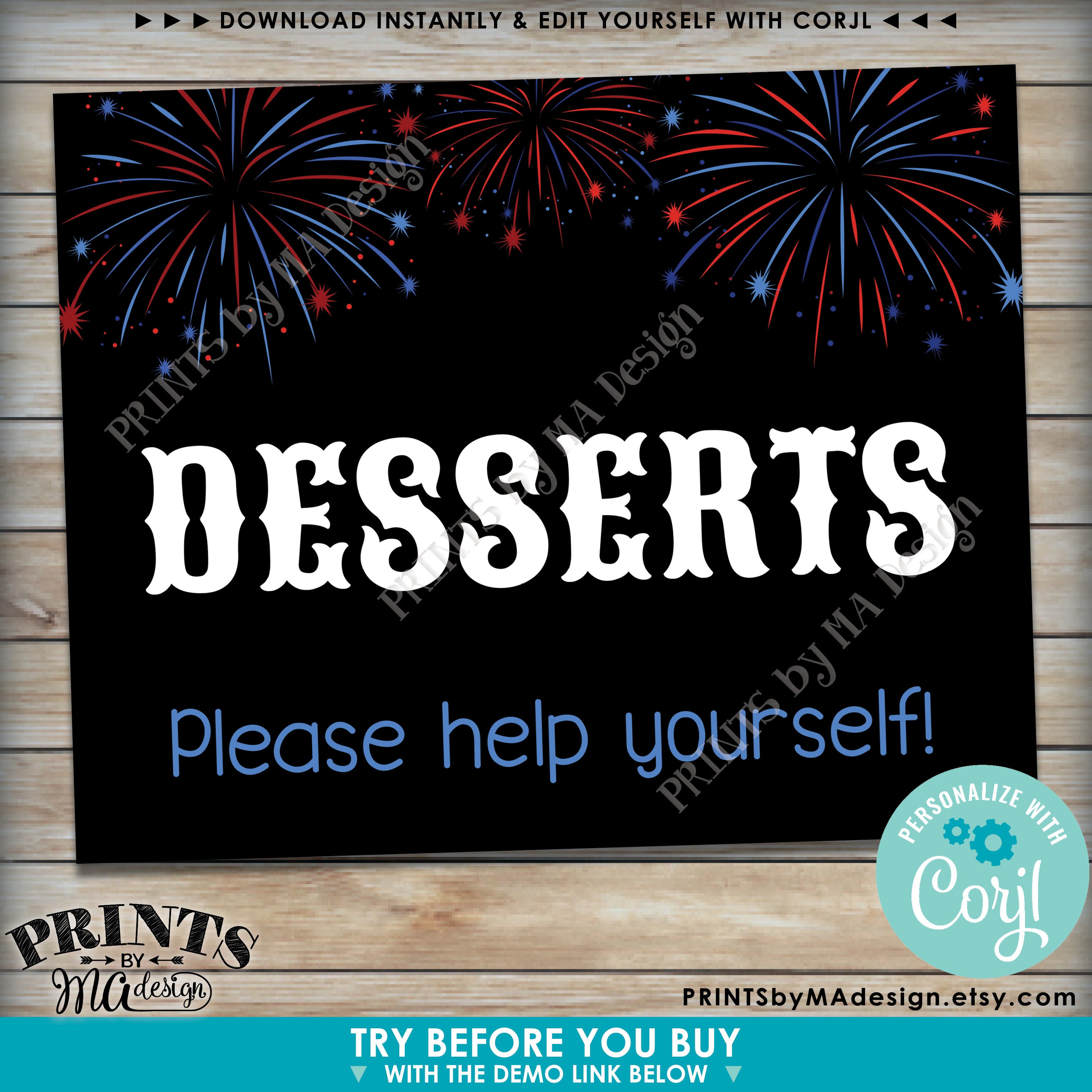 • Not all aspects of the design can be edited. On this design you can add/remove text, with several different fonts to choose from. Customize the color(s) of the text and the fireworks. The fireworks can have the colors changed but they cannot be altered in any other way. Please try it out with the demo link (see above) to see just how easy it is to edit, as well as what exactly is editable. Create ONE custom digital file per order.